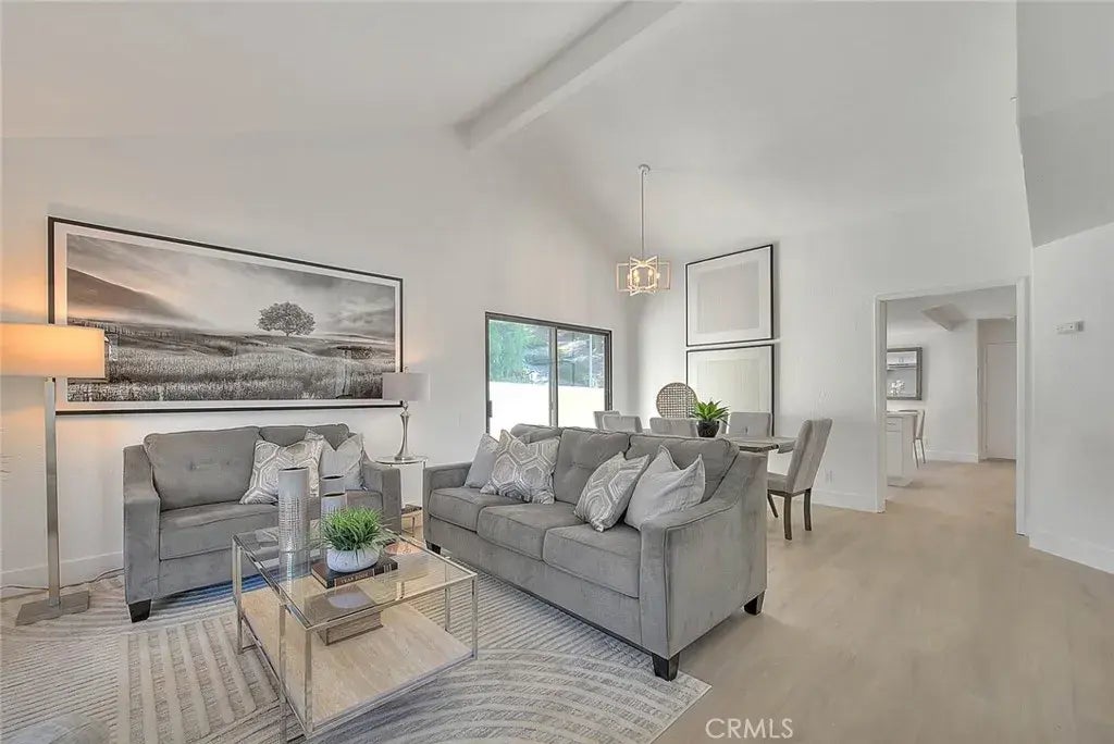 Located in one of Montefino's most desirable locations overlooking a beautiful hill, this stunning corner unit with lots of natural lighting offers unmatched privacy and luxurious upgrades. Double entry doors invite you to this beautifully remodeled home features new paint, new laminated wood floor throughout the whole house, white cabinets, granite counters, stainless appliances, scraped ceilings and modernized light fixtures. House was re-piped by HOA with new pipes. The downstairs, which lives largely like a huge open space. Living room has a trendy vinyl floor, cathedral ceilings and a warm fireplace. Patio door off the formal dining room opens to the side yard. Gourmet chef kitchen has white shaker soft closing cabinets, granite countertop, recess lighting, stainless appliances and center cooking island. The second floor offers three spacious bedrooms. Luxurious primary suite with gorgeous hill view, vinyl floor, cathedral ceilings and a large closet. A spa-like bathroom that includes dual sinks, recess lighting, beautiful white distressed floral mirrors, large oval tub, separate shower and toilet room. Other two rooms are both very spacious with new flooring and a walk-in closet. Expansive interior living spaces offer beautiful integration with the two outdoor patios. Laundry hookup is in the garage. 2-car attached garage. Residents of Montefino enjoy well maintained park-like settings and several community pools and spas . HOA includes water, trash, fire insurance, exterior and common area maintenance. Centrally located in the heart of Diamond Bar. Close to the Post