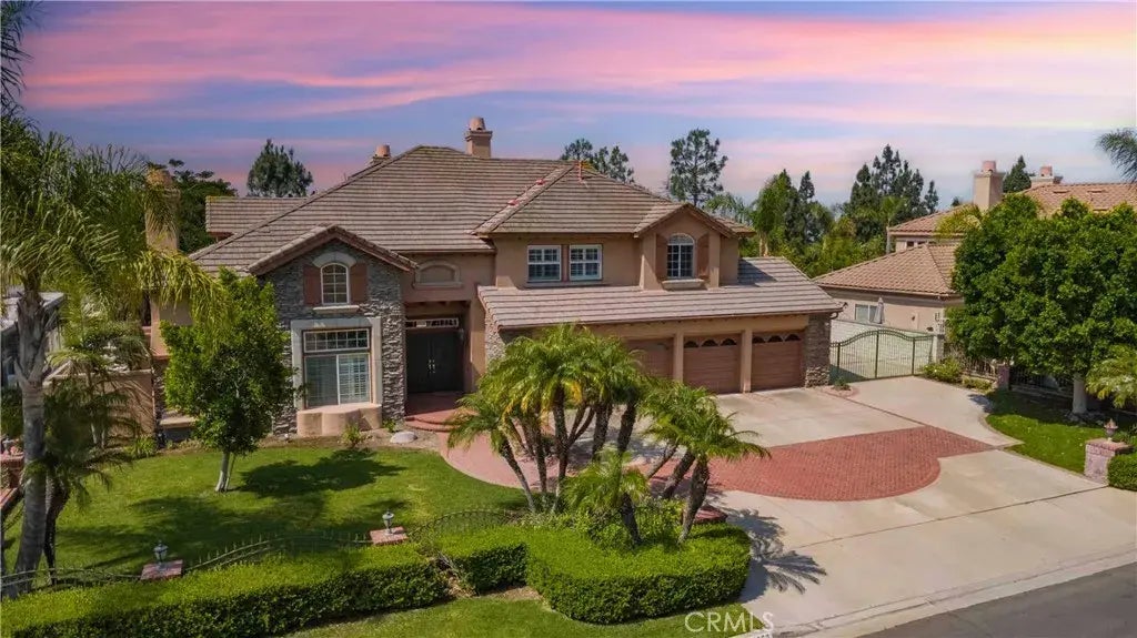 Welcome to Your Luxurious Sweet Home in East Yorba Linda! Nestled in a pristine, single-loaded cul-de-sac in the prestigious Vista Estates by Toll Brothers, this stunning residence offers privacy, elegance, and comfort on a premium view lot. Designed for both entertaining and everyday living, this home features a breathtaking backyard oasis with a sparkling pool, spa, rock waterfall, and lush tropical landscaping. Enjoy outdoor dining under the expansive terraced patio cover with a built-in BBQ, plus a full-size RV parking area (17ft x 46ft) within a 15,000 sqft Flat Lot and a spacious 4-car garage, perfect for ADU. Step through double doors into a grand foyer with soaring cathedral ceilings, a dramatic curved staircase, and a warm living room with a fireplace. The first floor includes a guest bedroom with a full bath, a formal dining room, a large updated kitchen with granite countertops, stainless steel appliances, built-in refrigerator, glass display cabinets, and an oversized island with a wraparound breakfast bar. The adjoining family room offers a cozy fireplace, large picture windows, and direct access to the backyard. Upstairs, the primary suite boasts double door entry, a retreat-like bedroom with a fireplace, and a luxurious bath with dual vanities, sunken tub, walk-in shower, private toilet room, and walk-in closet. A central loft and three additional bedrooms with wood floors complete the second level. Located in a highly sought-after neighborhood with top-rated Bryant Ranch Elementary school (rated 10/10) including Yorba Linda High (all rated 9/10). Don't miss