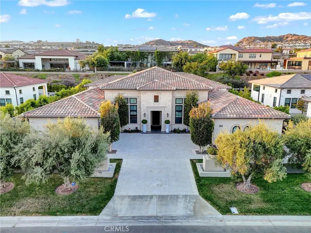 Rare SINGLE-STORY ESTANCIA estate with soaring ceilings (16 feet in Grand Room area), luxury finishes, and exceptional indoor-outdoor flow. Step into refined elegance with this stunning single-story estate offering approximately 5,143 square feet of thoughtfully designed living space with REAL FRENCH OAK WOOD flooring through-out. From the moment you enter youll be greeted by soaring ceilings that create the feeling of a grand two-story spacewithout a single stair in sight. At the heart of the home, amodern, dramatic rotunda-style entrysets the tone, leading you into two private wings. One wing features 2 spacious en-suite bedrooms, each with their own bathroom (and extra bonus room/laundry rooms with access to a mudroom and garage entryperfect for multigenerational living). The opposite wing houses the luxurious primary suite with 13 foot high ceilings and its own private retreat: a SPA-INSPIRED BATHROOM with dual vanities, soaking tub, separate shower, and an expansive walk-in closet. A 4th bedroom with own en-suite bath completes this wing, ideal as a guest suite or flex space which also has access to a mudroom and garage entry. The main living area is a showstopperan OPEN-CONCEPT GREAT ROOM combining the kitchen, living room (with 60" linear natural gas fire place), dining, and outdoor patio areas under breathtakingly high ceilings and ABUNDANT NATURAL LIGHT. The CHEFS KITCHEN is fully upgraded with premium appliances, an OVERSIZED QUARTZ WATERFALL ISLAND with a 24" wine cellar, a large breakfast nook, and matte European-style smooth wall finishes throughout. Designed f