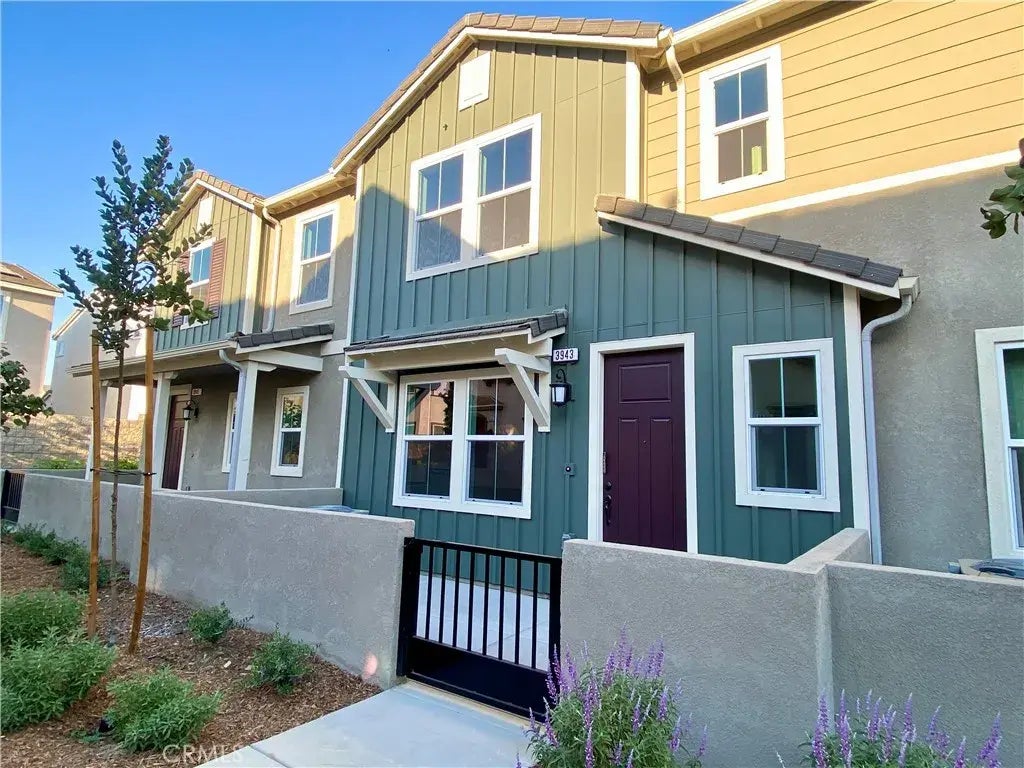 Energy-efficient home with solar system, tankless water heater, and LED lighting. This upgraded 3-bedroom, 2.5-bath home is located in the desirable Moonstone at Sunset Ranch community in South Ontario Ranch. The two-story layout features a spacious great room with an open-concept dining and living area. The kitchen includes a walk-in pantry, white shaker cabinets, center island with sink, quartz countertops, and stainless steel appliances. The primary suite offers a private bath with dual sinks and a soaking tub. All bedrooms have ceiling lights. Microwave, refrigerator, washer, and dryer are included. Solar system and tankless water heater help reduce utility costs $$$. Community amenities include a pool and spa. Close to both the pool and mailbox for added convenience.