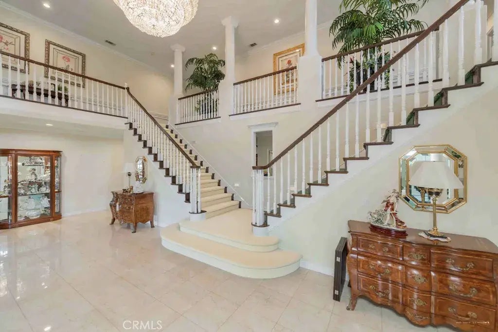 This exceptional estate, with original owner, located in the prestigious gated community of The Country, spans two parcels and boasts six luxurious bedroom suites, offering unparalleled comfort and privacy. An office with a full bath that can be used as the second downstairs bedroom suite, and an elegant, well-appointed powder room conveniently located between the formal living room and spacious family room, making it ideal for entertaining. A dramatic two-story grand entry with a crystal chandelier welcomes you. Wide double staircases leading to different sections of the upper level set an impressive tone upon arrival. The formal living and dining rooms provide generous spaces for gatherings, while the family room is equipped with a custom-built-in entertainment center and is seamlessly connected to the large open kitchen, breakfast nook, a couple of cozy conversation sitting areas, and a gorgeous wet bar with a table for wine tasting. The gourmet kitchen is a chefs dream, complete with dual center islands, custom cabinetry, and an adjoining wok kitchen for added culinary flexibility. Enjoy casual dining in the bright breakfast nook, perfectly situated off the open kitchen layout. Designed for both everyday living and grand entertaining, this home offers a thoughtfully designed floor plan that encourages flow and connection. Crown molding throughout the home. Wide and open upper-floor hallway with wainscot paneling. The upstairs laundry room is conveniently located near all bedrooms, and a bedroom-sized storage room provides ample space for seasonal dcor and miscellaneous