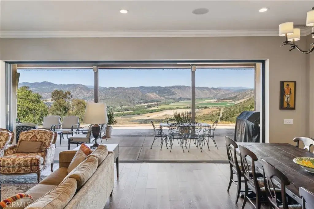 Own a piece of paradise in this Highland Valley Wine Country single-level Mediterranean home. Situated on over 3 acres, it overlooks the San Pasqual Valley and Safari Park and offers beautiful sunrise views and stunning mountain and valley views including pastures, flower fields, and citrus groves. The expansive open floor plan features high ceilings and large windows that flood the space with natural light. The large great room features a stone fireplace, built in bookcases and cabinets, and a 20 slider that tucks into the wall, opening your living space to a covered lanai which includes a fireplace and is wired for television and sound. The great room seamlessly flows into a gourmet kitchen which includes a large island, Subzero refrigerator, Wolf stove, under-cabinet dual zone wine cooler, and leather-finished granite counters with tons of cabinets; perfect for entertaining. Theres an enormous walk-in pantry and temperature controlled wine cellar with built in storage for 375 bottles, and room for more. The primary bedroom and bath feature great views, a huge closet, walk in shower, and large soaking tub. The other bedrooms are spacious and have views and walk in closets. The front courtyard features dining and sitting areas, with another outdoor fireplace and custom fountain. Enjoy your own established vineyard, enhancing the charm and appeal for wine enthusiasts. Theres also a grove with many fruit trees including lemon, lime, orange, tangerine, fig, pomegranate, guava, and 11 olive trees. Built in 2018, this home has many high-end finishes: 10 ceilings, crown molding