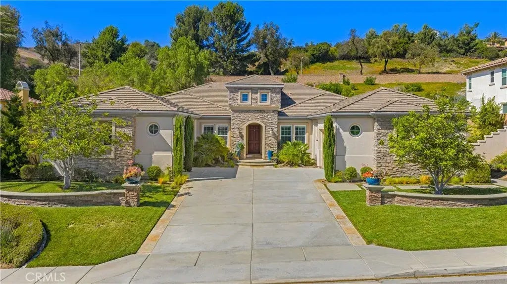 A Toll Brothers single-story luxury home situated in a tranquil community in the heart of Yorba Linda. The impressive great room features an entertainment bar, fireplace, and an expansive open-concept design. The upgraded chefs kitchen is ideal for hosting, with a large central island, six-burner cooktop, double oven, oversized refrigerator/freezer, and walk-in pantry. The primary suite includes a fireplace flanked by custom built-in cabinetry, a stone-accented en-suite bathroom with dual vanities, a separate soaking tub, and a walk-in shower. The office with custom cabinetry is conveniently located near the entrance. A separate wing offers two en-suite bedrooms, an open media room, and a spacious laundry area, completing the main residence. An attached guest casita with a living area, full bathroom, and walk-in closet provides an excellent space for visitors or a home theater. The highly-rated school district, with a 9-9-9 rating, is just 0.6 miles from Yorba Linda High School.