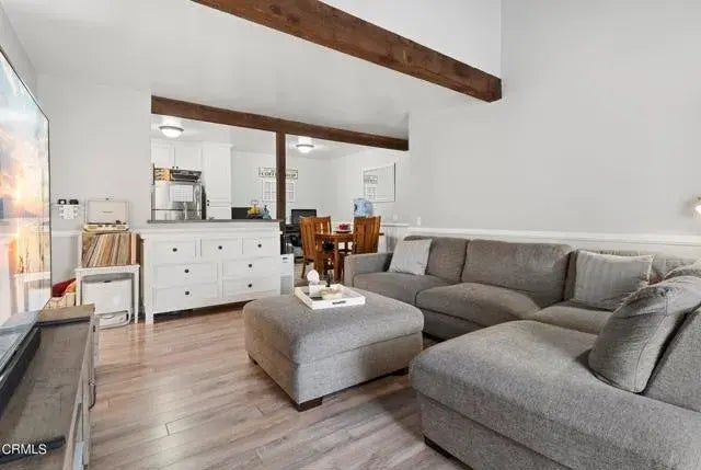 A charming upper condo unit at Peppertree. This unit has parking and garage space next to the complex. It has woodlike flooring recently painted interior. The kitchen appliances stay with the property. There is an air condition unit and balcony. The association has a pool, spa and laundry facility. You are minutes away from Ventura Downtown area, the Government center and several shopping centers.