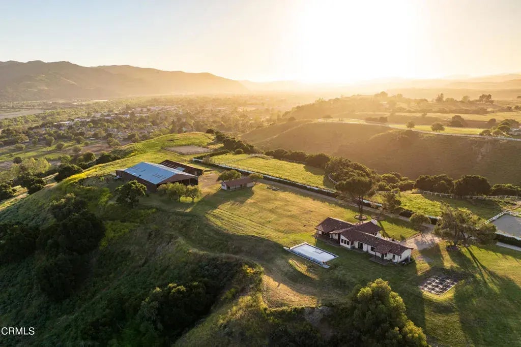 Nestled within the heart of Solvang's esteemed horse country, this distinguished gated estate sprawls across 25+ acres of private terrain, gracefully situated off Mesa Hills on Ballard Canyon--an American Viticulture Area renowned for its award-winning wines. Tucked away at the end of a cul-de-sac atop a scenic bluff, a picturesque driveway unfolds lined by lush shrubbery, revealing sweeping vistas of the valley beyond, framed by lush pastures. Boasting ample flat acreage, the property enjoys a remote location, yet only 5 minutes from local conveniences. Crafted by Mark Hemming, this renovated four-bedroom, four-bathroom residence features an array of upgrades. The well-designed floor plan delineates a primary suite and a cozy bedroom on one wing, while two additional bedrooms, each with an en suite bathroom, grace the opposite side. The kitchen exudes both style and functionality with custom kitchen cabinets, GE Monogram appliances, and captivating views of the infinity pool and spa and the picturesque Santa Ynez Valley. Two wood-burning fireplaces, one nestled within the family room and the other embellishing the formal living room alongside a wine bar and refrigerator, add warmth and character to the home. The entire property is embraced by breathtaking valley panoramas, and the newly constructed outdoor riding arena provides a scenic backdrop for equestrian lovers. The coveted indoor riding arena, housing 10 stalls, stands as a testament to craftsmanship and dedication. The barn, boasting an additional 14 stalls, offers versatility with two stalls repurposed as a greenh