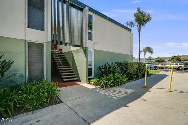 Dean Drive Single Story, level Entry 2 bedroom, 2 bath condo in Buena Ventura Gardens. Fresh with paint and trendy laminate floors this unit faces the hills of Ventura and is conveniently located near restaurants, Starbucks, the freeway and is just a few miles from the beach. The floor-plan feels generous in size and is light and bright. The bedrooms are roomy with ample storage and have cozy new carpets installed. The primary bedroom has its own on suite bathroom, over-sized closet and floor to ceiling windows in each corner. The combination of the living room, dining room and kitchen unite the function. A favorable laundry closet houses a washer, dryer and more storage. These rooms also overlook the private patio softened by landscape and quiet mountain views. You can witness the 2nd of two trees growing in the distance. It's an easy walk to your shared garage - where you can bring your groceries through your yard if you'd like to. This starter is waiting for your finishing touches and care.