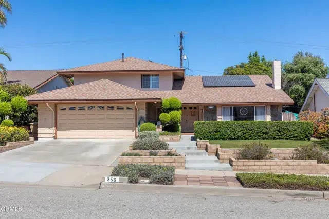 Superb split-level home in the Suburbia neighborhood with great curb appeal. This 4 bedroom, 2 1/2 bath home has 2,136 square feet and is situated on a generous 8,100 square foot lot. Plenty of elbow room inside and out! Step through the double door entry and you'll find a living room, formal dining room, and large family room adjacent to a spacious kitchen. Also on the first level is a laundry room and a half bath. A half flight of steps up takes you to the large primary suite with its own bathroom. Another half flight up the steps takes you to the second floor which has an additional 3 bedrooms and another bathroom. Out back you're going to love the huge private backyard and patio. The furnace has been recently replaced, and the ductwork has been upgraded. The home has solar panels and a Tesla battery backup that are owned (no lease!), that are going to save you money on your electricity bill. Attic insulation has been replaced. Conveniently located within walking distance of the award-winning Poinsettia Elementary School, Arroyo Verde Park, Kimball Sports Park, restaurants, shopping. Freeway access to the 126 and 101 are all close by. You are going to love this home!