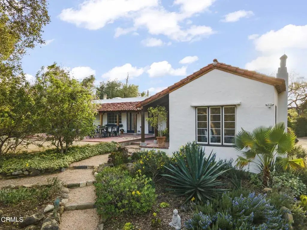 An Ojai rarity~ an Authentic Spanish home, with a detached multi-room studio (perfect for an ADU or an abundance of office space) with privacy and views of the surrounding mountains, all while being super close to downtown Ojai! Located in one of Ojai's most coveted areas, Foothill Road, you have found the perfect combination of vintage charm and modern conveniences. Every corner whispers of character and timeless beauty~ original hardware, hardwood floors, windows perfectly framing the mountains, rounded front glass door with a barrel ceiling, wood beams with a cathedral ceiling, and vintage tile accents on the fireplace. Combine these features with updated bathrooms, as well as updates to the plumbing and electrical systems, skylights throughout, landscaping including a citrus path, entry gate, and more! It makes it easy to fall in love with the Ojai lifestyle. The clay tile covered patio is one of the favorite features, accessible by multiple sets of French doors leading to the living spaces and bedrooms. It's the perfect spot for your alfresco farm-to-table dinner party with the 'Pink Moment' mountain view as your backdrop. When you're ready to unwind, the primary suite offers an oasis with a rejuvenating steam shower, a cozy corner fireplace and a separate sitting room. As you move through the home, you'll find spacious rooms, including a living & family room, a light & bright kitchen with a cozy breakfast nook, a dining room with multiple sets of French doors, and don't forget the oh-so flexible bonus space that is ready to convert to an ADU, office or guest space. Th