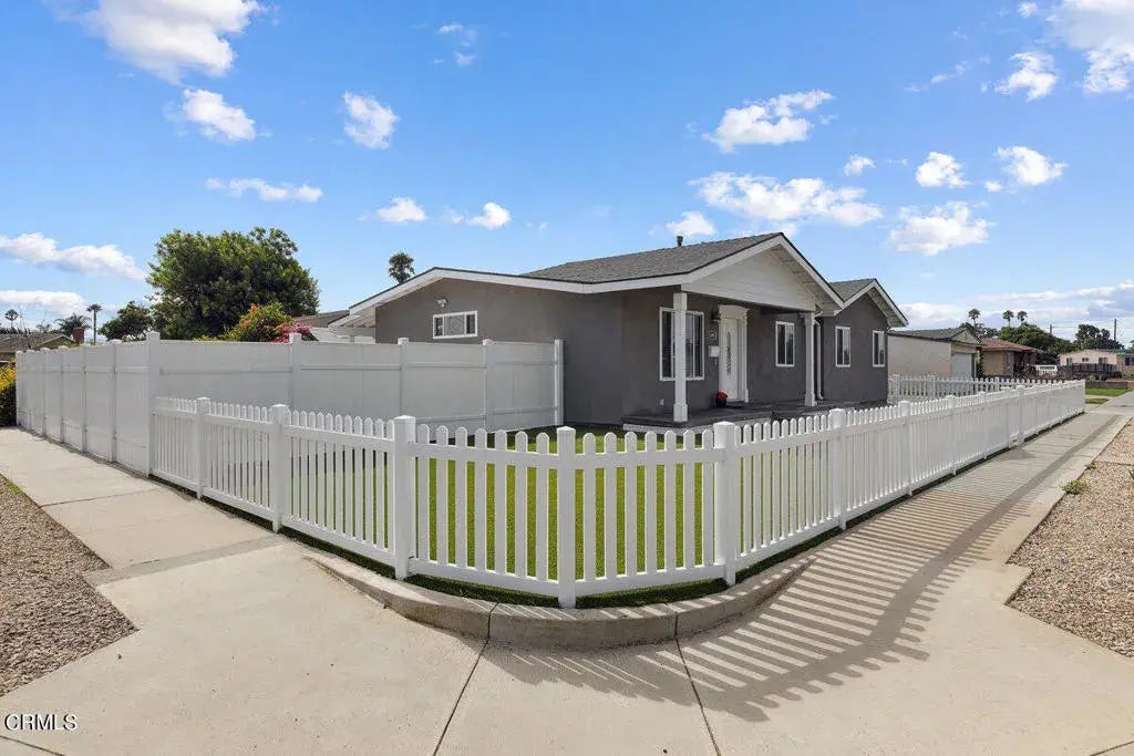 This contemporary and charming single story, 3 bedroom/2 full bath home is situated on a corner lot in a quiet, centrally located neighborhood. Many updated features include tastefully remodeled kitchen and both bathrooms, copper plumbing, electrical, double pane vinyl windows, HVAC system & duct work, several rooms freshly re-painted, refinished original oak wood floors in living areas, custom hardscaped side yard and driveway, vinyl fencing enclosing the yard, low maintenance artificial turf in front and back of home, newer gutters. The living area features an open floor plan as well as a high-grade sliding door to the enclosed back/side yard, which is perfect for entertaining in this community's year-round mild climate. Extra-large primary bedroom features a stunning attached bathroom with separate shower and spa tub, plus vinyl sliding door to back/side yard. The spacious detached garage has been expanded and includes a separate access door to the backyard. The attractive kitchen has been remodeled with soft-close cabinets/drawers and quartz counters. Located steps from the popular Bubbling Springs Park (undergoing a major remodel which will include a baseball field, dog park and bike path leading to Hueneme Beach and Hueneme Naval Base). Walking distance to library, community center, shopping, local elementary, junior and high schools. There is so much to love about this well-maintained home!
