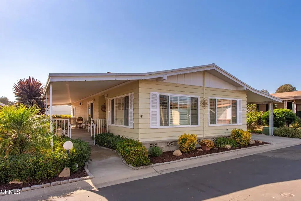 Welcome to this wonderfully maintained and upgraded home located in Ventura's premier park, The Patrician. The home offers a light, bright and open floorplan featuring dual-pane windows, plantation shutters, recessed lighting in the kitchen, and vinyl plank woodlike flooring throughout, as well as a lovely spacious front porch. The open living area lends itself to multiple conversation/activity areas, and there is formal dining area as well as a generous breakfast bar in the kitchen. The house has a new central heat and A/C system, one of the relatively few in the park with central air conditioning. The property also has earthquake bracing. One of the reasons this park is a favorite is its location in a tree-lined neighborhood adjacent to Camino Real Park with its tennis courts, sports fields, walking paths and dog friendly area. It's also within walking distance of Ventura College. The Patrician permits a single indoor pet up to 20lbs, and offers very attractive amenities including clubhouse with meeting areas, community kitchen, billiard room as well as gym, sparkling pool and spa. It's a beautiful home and one you can just MOVE IN AND LIVE!