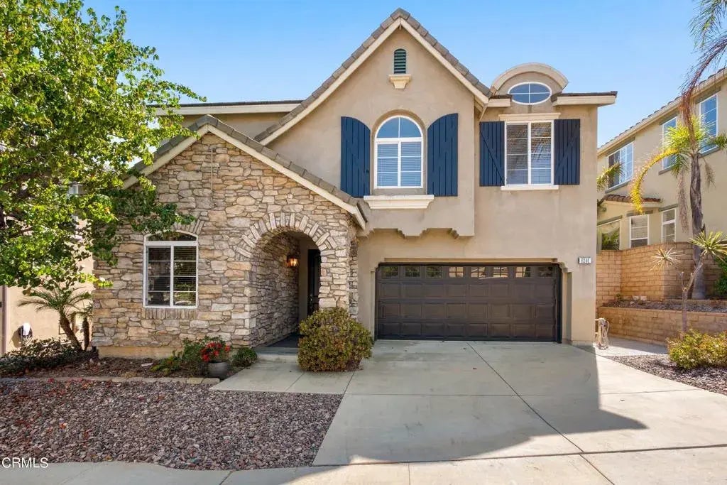 Welcome to this beautiful 2,387 SF, 4 bedroom, 3 bathroom home built in 2006. Perched overlooking a prime Ventura location. This two-story residence offers coastline views and the potential for a 5th bedroom, making it perfect for those who need extra space. Step inside to soaring ceilings and elegant finishes, and gleaming wood floors in the living room, dining room and entryway. The heart of the home features a large kitchen with ample cabinetry, travertine floors and an abundance of natural light that creates an inviting airy atmosphere. Enjoy cozy gatherings by the two-sided fireplace that connects the dining and living rooms, offering warmth and charm. The spacious primary suite boasts a coffered ceiling, crown molding, a luxurious walk-in closet, and its own ensuite bath, providing a peaceful retreat. Upstairs you find the convenience of a laundry room, while the home's additional bedrooms offer plenty of versatility for guests, an office, or hobbies. Outdoors a delightful patio with a gas fireplace and Views of the coastline, city lights and on a clear day the islands making the surroundings a perfect setting for entertaining and enjoying the ocean breeze under a shady gazebo. Additional highlights include air conditioning, two-car garage and a low maintenance yard. Included with the purchase is a refrigerator, water softener, gazebo, and washer and dryer. Don't miss the chance to call this elegant Ventura home your own!
