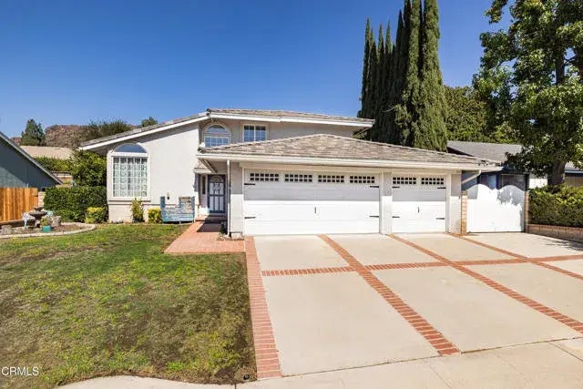 Welcome to this stunning Tri-level home in the highly sought-after Wildwood neighborhood! Situated on a spacious 8,276 sqft lot, this home boasts 2,150 sqft of living space, featuring 4 bedrooms and 3 full bathrooms. One bedroom and a full bath are conveniently located on the entry level, right next to the 3-car garage and laundry room for added convenience.Beautifully updated throughout, this home offers modern bathrooms with double sinks, stylish tiled showers, vinyl flooring, and a Bluetooth exhaust fan with built-in speakers and dimmable lighting. The home also features vaulted ceilings, dual-pane windows, wood-like flooring, plush carpeting, and recessed lighting throughout.The remodeled kitchen is a chef's dream, with updated cabinets, a sleek backsplash, modern appliances including a double oven, microwave, and dishwasher, plus a spacious breakfast area that overlooks the family room. Cozy up by the wood-burning brick fireplace or enjoy the convenience of a built-in desk.The master suite includes a private en-suite bathroom and a generous walk-in closet. Outside, a putting green complements the backyard, with gate access to the backyard and plenty of room to relax or entertain while soaking in serene mountain views. There's even potential to build a deck off the primary bedroom and space for extra parking for your toys.Conveniently located near parks, hiking trails, Cal Lutheran University, shopping, dining, and with easy access to the 23 Freeway, this home offers the perfect blend of comfort, style, and convenience. Move-in ready and waiting for your personal touch!
