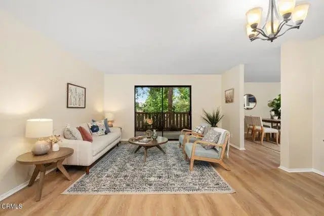 Ground Level, corner unit in the much desired Oaknoll Condominium Complex! This is a spacious unit with 1,147 SqFt, living area, featuring two bedrooms, two bathrooms, two living areas usable as dining or den, a fireplace and a patio for al fresco dining. Home has new appliances, new kitchen sink and disposal and beautiful new flooring. The unit has freshly painted walls with smooth ceilings. Stackable laundry hook ups are located in the master bathroom. Fantastic 55+ community with onsite management, community center, recreation room, gym, pool, spa, shuffleboard and more. Centrally located and very close distance to Thousand Oaks Mall, shops, restaurants, parks and trails. The area surrounding the unit is lush with mature landscape. A great opportunity to live in a well kept community!