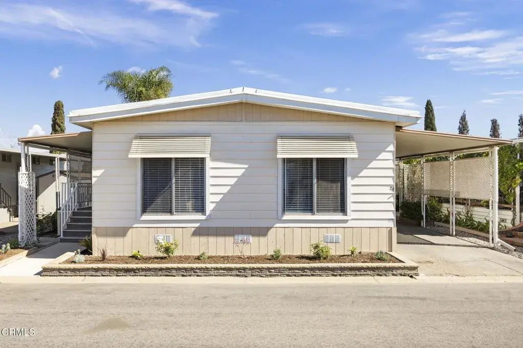 Charming 2-bedroom, 2-bath mobile home in a desirable senior community full of amenities with low land lease. New furnace and new water heater. Situated on one of the prime streets, it offers a cozy front porch and an extended deck off the master bedroom, providing stunning views of the mountains and nearby strawberry fields. The serene atmosphere makes it a unique and peaceful retreat. Don't let this great opportunity pass by, come see for yourself!
