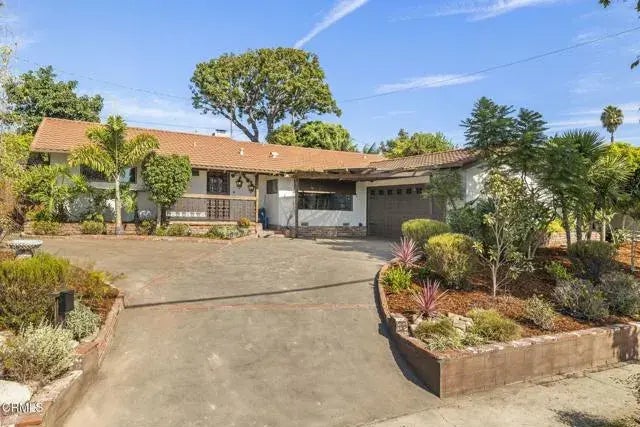 Step into a world of rustic elegance with this captivating 3-bedroom, 2-bathroom home, where Spanish European charm meets modern comfort. Centrally located in Ventura, this home offers a unique blend of comfortable living and a serene garden landscape that you can feel throughout the home. Enter the front door to an open kitchen complete with large farmhouse sink, new GE appliances, open shelving and one of two large sun-rooms which brings the feel of the outdoors in. This entire home is light and bright due to the many windows. Just off of the kitchen is a bathroom complete with a charming claw foot tub which offers old-world charm. The second bathroom is updated and has a shower and a beautiful vanity. Just off of the main living area is a second sunroom which could serve as a family room or more formal dining area. This versatile room is light filled and has views of the gardens in every direction. The main bedroom has been expanded and features vaulted ceilings with exposed beams. A designated studio with a sink could serve as an art room, potting shed or creative space. The backyard exudes privacy, peace and tranquility with its gurgling Koi pond, various entertainment areas, arbored sitting areas, meandering pathways and cascading avocado tree. With peek-a-boo ocean and island views, and a backyard designed for peaceful entertaining, this home offers the perfect blend of charm, beauty, and function. Close to Ventura College, shopping, hospitals, hiking trails, restaurants, parks and more. Don't miss this special one!