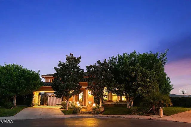 On a Clear Day you Can see Forever!Grand and exquisite home located in the private gated community of Trieste Estates. Spectacular panoramic views, it features a formal entry, an open floor plan with soaring ceilings, formal living room with fireplace, a gated courtyard, an office/library area with adjacent guest bath, a spacious family room with views and access to the Oasis-like back yard perfect for entertaining and summer swim fun, a formal dining room, laundry room, and a downstairs suite perfect for guests or extended family. The gourmet kitchen is the true heart of the home with a large island, butler's pantry, high end stainless steel GE Monogram appliances and adjoining breakfast area. Gleaming wood flooring through out the upstairs. The second level features three bright bedrooms, including an entire wing dedicated to your master suite with a hallway, luxurious bathroom and walk in closet, and a large balcony with views of the Reagan Library across the rolling hills of Moorpark. There is another full bath shared by the additional two upstairs bedrooms and a huge game room perfect for indoor entertaining. Two car garage. Enjoy an evening glass of wine or a morning cup of coffee on one of several balconies or patios with breathtaking views in this elegant home with too many amenities to mention!