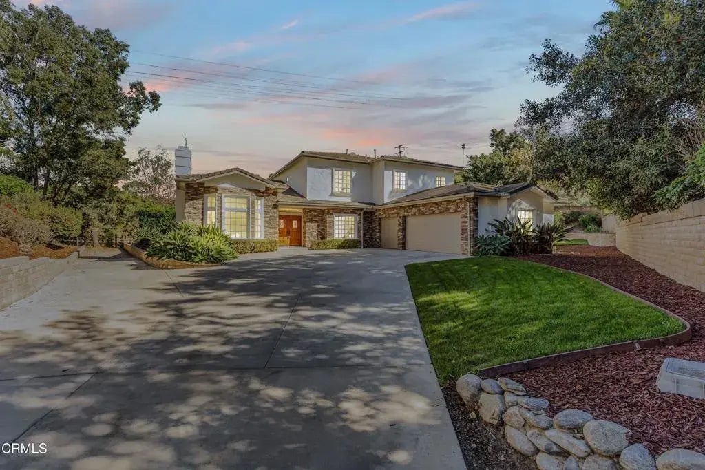 Find your sanctuary nestled in the heart of Thousand Oaks. This stunning updated home offers spacious living, natural light, and custom features at every turn. Privacy and location perfectly combine in this exclusive neighborhood where a lush, generous lot sits at the end of a long private driveway. Awaiting you is a fully updated interior, where premium plank flooring flows throughout an open floor plan, a tranquil palette is accentuated by fine finishes, upscale touches, and one-of-a-kind character. Natural light pours into the exquisitely designed chef's kitchen featuring luxury custom wood cabinetry, matte black finishes, Calcutta quartz countertops, stone backsplash, stainless steel appliances, and large windows from where you'll enjoy views of the expansive and private backyard. The primary bedroom located upstairs, with its very own stunning spa-like en-suite bathroom includes custom design double vanity, walk- in shower, soaking tub, and tile flooring. In addition, two bedrooms with their own private full bathroom are located upstairs. The fourth bedroom and bathroom, conveniently located on the main floor, can be used as a work-from home office or additional living space. The backyard is a true retreat, offering a vast open field for various outdoor activities and potential for more. With its own laundry area, a three-car garage, RV parking, and 2 fireplaces, this property is both functional and breathtaking--perfect for those seeking space, style, and serenity. Located minutes away from parks, California Lutheran University, shopping centers and much more! This is