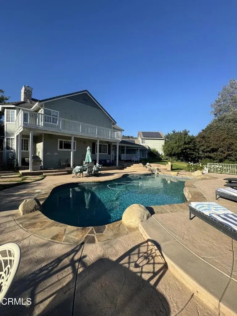 WOW! Never before on market, this one has it all. Beautiful Santa Rosa Valley Farmhouse with wrap around porch in a magical setting on over an acre of all usable land. End of cul de sac location that provides the ultimate privacy. Large Romantic primary suite has large walk in closet, a warm fireplace, charming sitting area with view. Beautiful wood floors, and crown moldings throughout. Entertainers formal dining room with custom crown moldings. Chefs kitchen has top of the line stainless gas appliances, large granite center island with sink and seating for 4, or enjoy the sunny breakfast room next to a screened in porch. Granite counter tops with custom tile backsplash. Custom cabinetry, conventional oven, built in microwave, trash compactor and much more. Very nice spacious secondary bedrooms and bath. Tennis anyone? Incredible NS lighted Tennis court is amazing, or dive into your resort like swimming pool and spa with water feature. And, if that's not enough, saddle up the horses for a trail ride! This property has the perfect horse facility with spacious barn and turn outs, large sand arena area and a separate delivery road right to the barn for easy horse and hay access. Also there is a spacious lawn area for fun and games. In addition, the front of the property is fenced with custom artistic wrought iron and provides good security for small pets. There is a separate detached guest house/ADU that is a two story with a well thought out floorplan. It includes a stunning kitchen with quartz counter top and subway backsplash and set up as a two bedroom one bath in approx