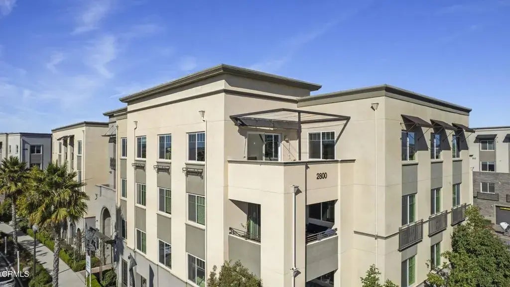Nestled in one of the best locations within Oxford Flats, this stunning top-floor condominium (Plan 4) offers breathtaking views and luxury living in the highly desirable Wagon Wheel community. This the largest plan and a single-story condo that boasts 2,336 sq. ft. with 3 bedrooms, 2.5 bathrooms, and an optional 4th bedroom currently used as a den/office. Every room in this exceptional condo is filled with natural light, showcasing panoramic sunset views over Channel Islands, the community park, and town square. Ideally located away from the freeway with expansive windows and high ceilings enhancing the open, airy feel throughout. The private lobby conveniently provides elevator access directly to your floor. Inside, the home is beautifully upgraded with 6-inch wood plank flooring, neutral designer carpets in the bedrooms, and elegant tilework in the bathrooms. The open-concept living space features a cozy fireplace, stunning views, and big glass slider to one of the few large, uncovered decks in the building--complete with a retractable awning making it ideal for relaxing or entertaining while taking in the scenery. The chef's kitchen is a highlight, featuring a large center island, stainless steel appliances, quartz countertops, white shaker-style cabinetry, and designer light fixtures. The expansive primary suite has a walk-in closet and an oversized bathroom with dual sinks, a vanity, and a wide-entry shower. For privacy, the two additional bedrooms are located on the opposite side of the home, sharing a full hallway bathroom. There is abundant storage with large close