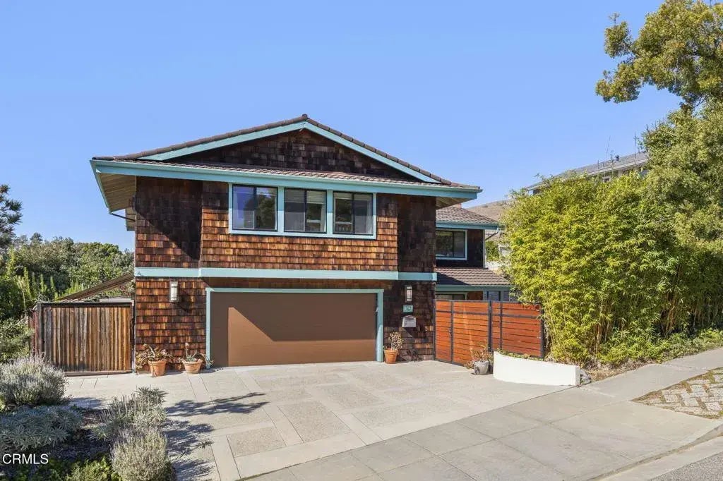 Welcome to 363 Hamilton, a beautifully appointed home nestled in the foothills of Ventura, in one of the area's most sought-after neighborhoods. This expansive home offers over 3,000 square feet of living space, with 5 bedrooms (TWO master suites) and 3.5 baths, providing ample room for family, guests, or flexible living arrangements. Enjoy ocean and city views from both master suites, creating a serene retreat. The versatile floor plan is ideal for those looking for an ADU option. The second master suite, a spacious 638-square-foot addition completed in 2002, includes a cozy fireplace, a large walk-in closet, and a generous bathroom. This retreat can be easily separated from the main home to create an attached ADU, with capped plumbing in one of the walls, making it simple to add a kitchenette if desired. A gated private courtyard welcomes you into the semi-formal entry, leading to the formal living room with a wood/gas fireplace and the formal dining room. The bright and spacious family room, filled with natural light from multiple windows and a sliding door, opens to the renovated kitchen. This kitchen is a chef's dream, featuring a 6-burner Thermador freestanding range/oven, a second wall oven, a built-in fridge, quartz countertops, and custom tile backsplash. The backyard, thoughtfully redesigned, is an entertainer's paradise. It features a built-in fire pit with a seating area, a tranquil water fountain, and low-maintenance artificial grass. The yard backs up to a barranca, adding a sense of privacy and making the outdoor space feel even larger. The property also incl