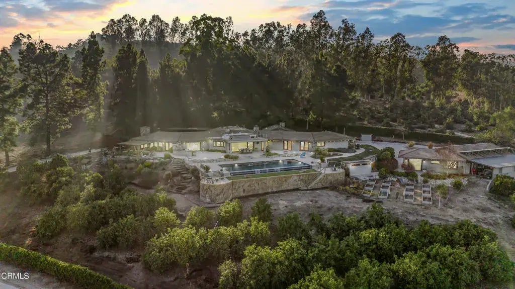 Discover an extraordinary architectural masterpiece spanning 4,600 sq ft of luxurious living space, nestled on a breathtaking 3.2-acre lot. As you approach the property, an expansive driveway leads you to a grand entrance with a magnificent wooden door set against a serene desert-inspired front garden, adorned with charming tiled details on the gabled roof. Open the doors to reveal breathtaking views throughout the home that further accent the light wood floors and the elegant living room featuring wood-beamed ceilings and a stunning stone fireplace. The culinary dream kitchen boasts wooden cabinetry, a walk-in pantry, and an impressive array of high-end appliances, including a two-door horizontal refrigerator, wine cooler, 6-burner stove with griddle, two ovens, and a skylight that bathes the space in natural light. The home includes a dedicated home office, a multipurpose room, laundry room, and a family room with wood paneling and fireplace. The master suite features a sliding wooden door and luxurious en-suite bathroom, while two additional bedrooms offer their own bathrooms and walking closets. The gem of the home is the backyard, featuring a tranquil pond and fountain, a luxurious pool with jacuzzi, a fruit tree orchard, and a vegetable garden. A detached guest house provides additional living space with its own bedroom, bathroom, living room, dining room, kitchen, and garage. Completing this exceptional property is a three-car garage and a solar panel system. This private retreat offers the perfect blend of luxury, functionality, and natural beauty for the most disce