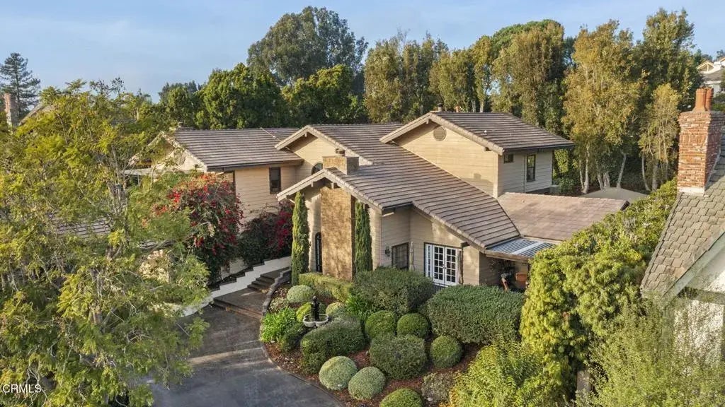 Executive living at its finest-welcome to your new home!Nestled in the Las Posas Estates near both Spanish HIlls Country Club and Las Posas Country club, this meticulously cared for home offers you a lifestyle like no other. A quick view of the Equestrian center is seen as you turn into a quiet cul-de-sac near neighbors with clear pride of ownership. Mature trees adorn the drive way that lead you to a staircase up to the front door. You are then welcomed to a bright marble entryway with vaulted ceilings and travertine tile. An impressive living room near the large dining room offers you a chance to sit with those you love. A breakfast nook then leads to a roof covered porch for perfect evening dinners. The kitchen allows any chef to cook quality meals and a family to enjoy top of the line appliances. The main floor bedroom has French doors that open to the garden and a small porch for morning coffee. Finally, the bottom floor is capped off with a game room that offers a wet bar for having fun with your family and hosting any soiree you can imagine. An expansive two story window and stairway leads to the upstairs bedrooms with private veranda and in-room fireplace. The primary bedroom boasts large jacuzzi tub, stone countertops and a chance to rest. The backyard is a masterpiece of drought tolerant landscaping, a water efficient drip system and cozy entertainment spaces. A fire pit, planter boxes, gazebo and a gardeners shed finish off the backyard.There are also solar panels and a Tesla battery backup in the garage. Whether you want to drive your cart to the club or ride yo