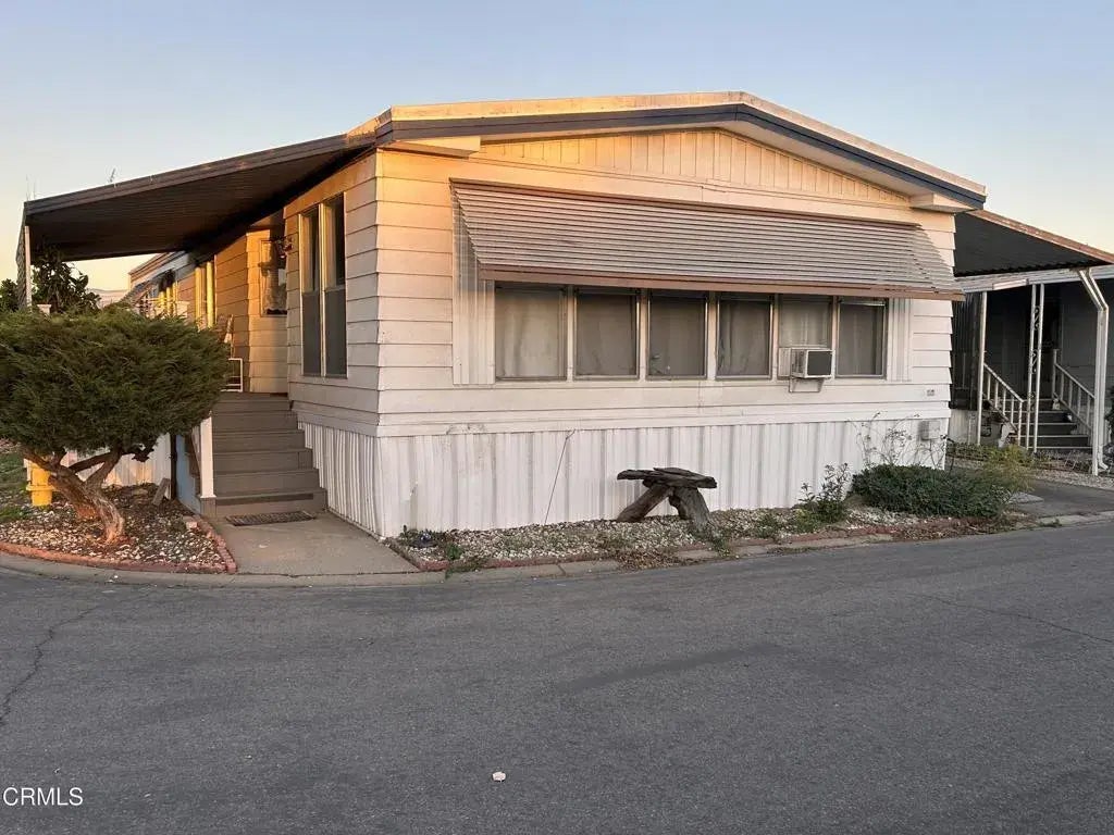 Price reduced for quick sale. Contingent on successful close of replacement property. Welcome to this well designed home in the Buenaventura MHP Senior community. The flow of this spacious 2 bedroom 2 bathroom floorplan, with generous living room AND den will allow you to spread out comfortably. The huge master bath has a classic vanity and lots of natural light. The cleverly designed kitchen includes a center island with attached breakfast table, and this end unit boasts a generously producing orange tree. The many recent upgrades include wood-like laminate flooring, custom closets by Closet World complete with a lifetime warranty, beautiful new deck and ramp, and solid drywall walls and ceiling throughout, ensuring a sturdy and durable structure. Further perks include a soft water system, Ring cameras, new screens, partial plumbing upgrade, resurfaced shower and tub in both bathrooms and fresh paint. The amenities at Buenaventura Mobile Home Estates include a huge pool, indoor spa, sauna, library, card room, and billiard room. This property has one of the lowest space rents in the county