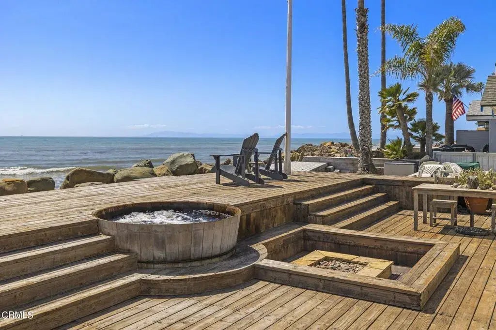 Enter this enchanting beach bungalow nestled in Faria Beach, just steps away from the ocean, literally. The interior and exterior exude a welcoming coastal charm, embodying the essence of California living. Relax on the patio and marvel at the mesmerizing marine life unfolding before you - observe pelicans diving, seagulls soaring, and the occasional sea lion or dolphin passing by. Noteworthy features of the patio include a sunken fireplace and a built-in hot tub, providing a luxurious outdoor retreat. Recently renovated in 2022, the kitchen showcases quartz countertops and high-end stainless steel Viking appliances, enhancing the culinary experience. Ocean frontage per tax records is 49.55 feet.
