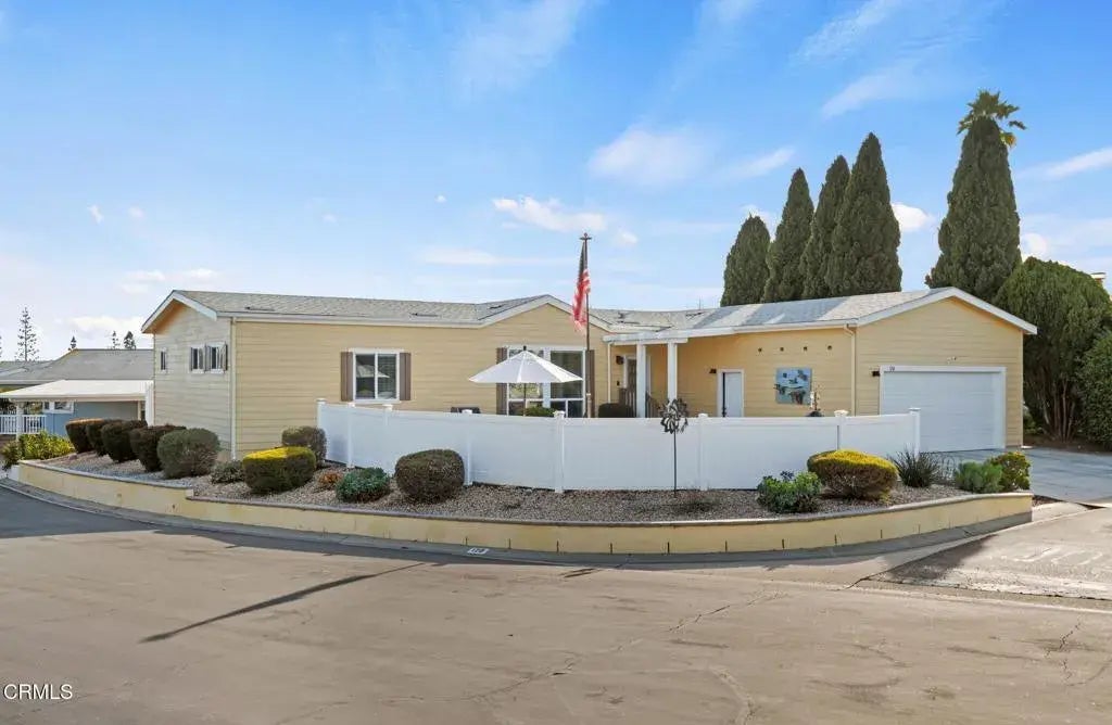 Ventura Lemon Wood Senior MHP.A Highly desired park with babbling brook and mini lakes, putting green, pool, clubhouse and walking trails. This home was built in 2016, one of the largest in the park with approximately 2000 square feet with 4 bedrooms (one used as an office). All bedrooms have a walk-in closet. Two full bathrooms. Nine-foot ceilings, central air plus whole house exhaust fan, separate utility/storage room, & indoor laundry room. This corner location and lot size are a plus. Over sized garage approx. 500sq ft. with high ceilings and built-in floor to ceiling shelving with additional room for 3 cars in the driveway.. Additional upgrades include Water softener, Reverse Osmosis System. Lots of custom cabinets. Technology that stays: Ring doorbell, Nest Thermostat, MyQ internet enabled garage door opener, Arlo security camera system, Rachio internet enabled sprinkler control. BBQ, patio furniture and including flag pole stay.