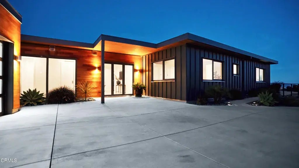 With panoramic views of the Pacific Ocean, Channel Islands, and Ventura city lights, 153 Nob Hill Lane blends Scandinavian architecture with wellness-oriented smart living. Built in 2022, this four-bedroom, three-and-a-half-bath home offers a single-level floorplan designed to balance light, flow, and function. The chef's kitchen is outfitted with Miele appliances including an induction cooktop, steam oven, and convection oven. A dedicated butler's pantry houses a full-size freezer, sink, and extensive storage. Throughout the home, wide-plank light oak wood flooring, custom cabinetry, and HunterDouglas Powerview motorized shades create a clean, modern aesthetic softened by natural textures and light. The primary suite includes a deep soaking tub and walk-in closet, while two Jack-and-Jill bedrooms and a separate guest suite with Murphy bed complete the layout. A large utility room with custom storage and access to the 2,800 sq ft concrete 4-ft tall crawl space adds discreet functionality. Outdoor features include a 2023 Almost Heaven barrel sauna with smartphone controls, a 2024 Renu Therapy cold plunge, a wraparound porch, and outdoor shower--all under a steel awning that shades the spa area. The detached garage includes two Tesla chargers, with rooftop solar panels supported by Electriq Power battery storage. Close to the Ondulando Club, beaches, shopping, and local events, this home captures a lifestyle of mindful design and modern simplicity.