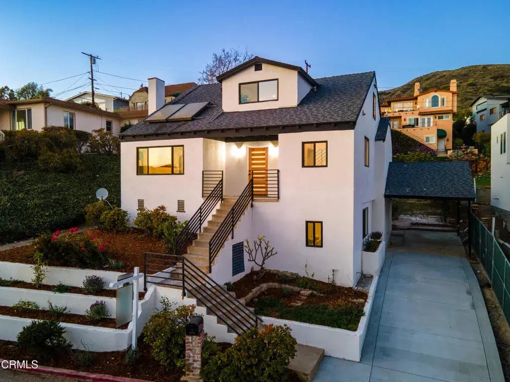 Nestled above the stunning Ventura coastline, this beautifully transformed 1928 home offers the perfect blend of historic charm and modern upgrades. As you approach, a front viewing porch welcomes you, ideal for sipping your morning coffee while soaking in the coastal views. Inside, an open, airy layout is bathed in natural light, with a charming fireplace in the living room. One the main level two spacious bedrooms and a generously remodeled bathroom await, providing comfortable living spaces. Ascend the newly modernized stairs to discover the perfect primary suite, featuring an office/den, multiple closets, a private bedroom, a remodeled bathroom, and direct access to the backyard. The carport leads to a large mudroom with laundry hookups and a convenient half bath. A separate entrance opens to the expansive bottom floor, offering endless possibilities to create an ADU or home office.Outside, the terraced rock walls in the backyard present a blank canvas for your summer plans, whether for outdoor entertaining or creating your own garden retreat. This home is a true reflection of the relaxed Ventura lifestyle--come see it for yourself and experience the charm it offers.