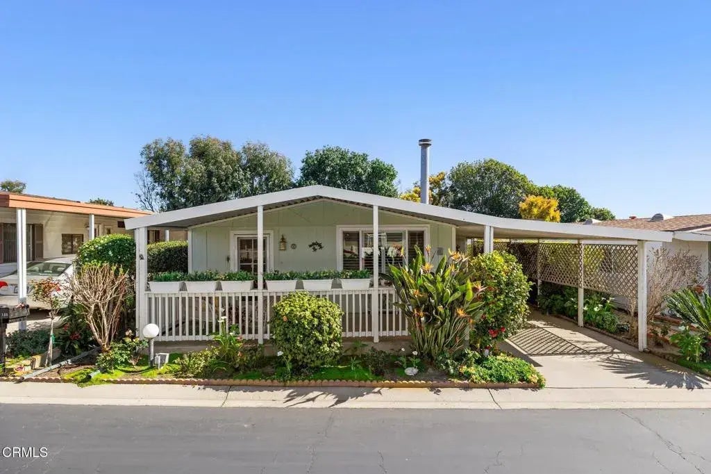 Are YOU Ready to Retire in Style?! This beautifully remodeled manufactured home in a great Ventura location offers the perfect blend of comfort, style, and convenience for seniors 55+. The home has been thoughtfully renovated with numerous high-end improvements. The rejuvenated roof comes with a 5-year warranty, and the home features new gutters, professionally painted exterior siding and trim. All windows have been replaced with energy-efficient vinyl dual panes, and adorned with beautiful plantation shutters. You'll enjoy high-end laminate flooring and baseboards throughout, with crown molding in the living room adding an extra touch of elegance. The spacious living room also boasts a cozy fireplace, perfect for those colder days. The kitchen and bathrooms have been upgraded to meet the highest standards. The bathrooms feature chic subway tiles, white vanities, and spacious walk-in showers. The kitchen includes newer appliances, and both the kitchen sink plumbing and GFI outlets in the kitchen and bath have been replaced. The home also benefits from upgraded copper plumbing and a reverse osmosis filter system. The open floor plan invites plenty of natural light, making the living area feel even more expansive. The large covered front patio is the perfect spot to relax in privacy while enjoying the outdoors, with landscaped privacy from neighboring homes on both sides. Additional highlights include dual entry to a spacious shed with plenty of storage. The community clubhouse provides a wealth of amenities, including a year-round heated outdoor pool and spa.Located with eas
