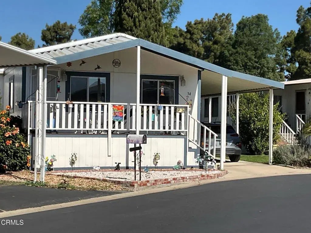Welcome to La Posada Mobile Home Park. Bright and light, move in ready with a huge bonus room. Two spacious bedrooms and two baths.Enjoy vaulted ceilings, newer flooring and paint, an open floor plan, air conditioning, EV plug, and best of all is the rent controlled space fee. Enjoy the park amenities: pool, indoor spa, clubhouse, Billiard room, RV parking when available for low fee.This home sits on a larger corner lot, loquat and kumquat fruit trees. Great space to sit and enjoy the sunshine and watch the hummingbirds.This 55 and over community is centrally located, short distance to Barnes and Noble, Sprouts, Kohls, Sharkeys, Urban Cafe, Michaels, Golf Courses, beaches