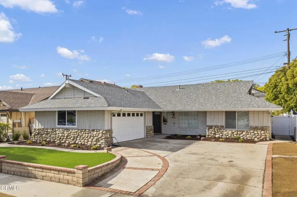 Welcome to this beautifully updated single-story home nestled in a quiet North Oxnard neighborhood. Offering a blend of modern upgrades and classic charm, this property is dialed in and move in ready! The entrance greets you with gorgeous and modern wood-like tile floors, open concept kitchen, dining, and living room with fireplace for a clean and contemporary feel. The kitchen has been updated beautifully with a large pantry and flows seamlessly into the dining and living areas. The primary suite features a slider to the yard, two closets, and a remodeled bathroom with walk-in shower. The 3 secondary bedrooms all offer great space and lots of light. The hallway bathroom has also been tastefully remodeled with modern finishes. Outside, enjoy beautifully newly landscaped front and backyards for easy maintenance and entertaining or simply enjoying the SoCal breeze. Gorgeous vinyl fencing and your very own orange, lemon and apple trees. Major improvements include a newer roof and gutters (2023), new plantation shutters, newer windows, and water heater (2019), newer closet doors, and full interior repaint just two years ago. The garage has also been finished for additional gym or lounging space. Incredible opportunity for a well-cared-for home in a great location with convenient access to parks, school, highway, shops, dining and entertainment!