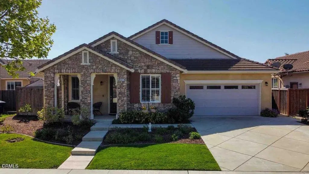 Lovely must see single story 3 bedroom, 3 bathroom, cul-de-sac home located in the beautiful Henderson Cottages community of East Ventura. This beautiful home has great curb appeal with mature landscaping, covered patio, large glass front door, stone facade, wood siding and trim accents. Entry leads in to the open living and dining room featuring a high ceiling, recessed lighting, large plantation shutters and gorgeous wood flooring. Short hallway leads to a sizable bedroom and bathroom with tile counter and backsplash, extended cabinets and a shower stall. The charming kitchen features granite counters and backsplash, stainless steel appliances, storage pantry, and a hanging pot rack over the wrap around counter island with bar overhang. The family room shines with several large windows looking out to the backyard, along with a fireplace with granite surround.Down the hall is the spacious main bedroom with backyard access, walk-in closet, and an en-suite main bathroom with dual sinks, tile counter, tile backsplash, and a separate bathtub and walk-in shower. Also in the hallway you'll find an additional bedroom, bathroom, laundry room with storage cabinets and garage access. The cozy, inviting backyard features recently resealed stamped concrete, full mature landscaping, garden area, fruit trees and a large storage shed. The high fence and home elevation provide privacy from rear and side neighbors. Additional home features include two-tone paint throughout, air conditioning, tankless water heater and tile flooring in the bathrooms.