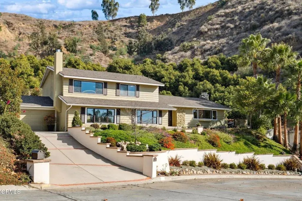 Sited on a private cul-de-sac, at the top of the coveted Ondulando development, this 4 bedroom, 3 bathroom home spans 3,348 square feet of interior excellence. Upon entry you are greeted by a light and bright foyer with natural wood floors. Just off of the entryway is the family room with fireplace, south facing windows and peek-a-boo ocean views. This space flows effortlessly into the dining room with sliding doors providing easy access to the back deck. Just off of the dining room is the center island kitchen with stone counters, professional grade appliances and views of the lush backyard. This eat-in kitchen also features vaulted ceilings and custom bench seating with storage. Downstairs you will find one of the four bedrooms as well as a gorgeous bathroom, living room with brick fireplace and tongue and groove ceiling, laundry, and bonus area with sliding doors opening to the rear of the home. Upstairs is a hall bath with tub and the three remaining bedrooms, including the primary suite. The primary suite features additional south facing windows with ocean views, a walk in closet, and spa-like bathroom with travertine floors and shower surround. The expansive, parklike grounds offer a grass lawn, recently resurfaced pool and spa, mature trees and a custom stone clad terrace with European aesthetic and ocean views. This is a home that truly has so much to offer.