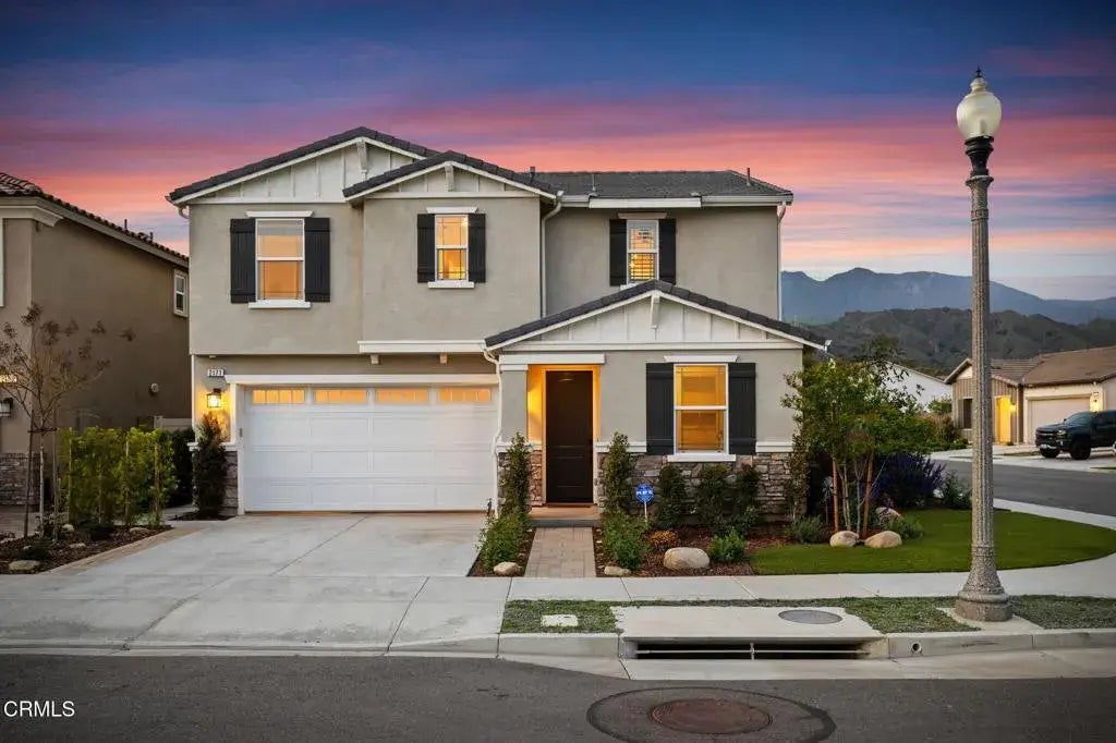 Welcome to 2171 Moro Way - Stylish Upgrades, Breathtaking Views, and Resort-Style Living. Discover elevated living in this beautifully upgraded home in the desirable Harvest at Limoneira community. With stunning views of the Topa Topa mountains, a flexible floor plan, and designer touches throughout, this home offers a unique blend of luxury and comfort. Not your average new build- step inside to find upgraded 9-foot ceilings and an expansive open-concept layout perfect for everyday living and entertaining. The heart of the home is the fully renovated chef's kitchen, featuring shaker-style maple cabinets with soft-close drawers, stylish bronze hardware, a striking hickory island, quartz countertops, a baby blue tile backsplash, a Wolf range with double oven, and an upgraded stainless refrigerator. Built-in storage solutions and a generous breakfast bar add both function and flair. A bedroom and full bathroom on the main level offer versatility for guests or multi-generational living. Upstairs, the spacious loft provides the perfect secondary living space, office, playroom, or media area. The primary suite is a true retreat with sweeping mountain views, a deep soaking tub, dual vanities, and ample closet space. Berber carpet runs up the stairs and throughout the upper level, complementing the home's warm and inviting aesthetic. Thoughtful upgrades and abundant storage continue throughout the home, including an oversized two-car garage with EV charging capability and two-car driveway. The backyard is an entertainer's dream, complete with a fully equipped built-in outdoor kitc