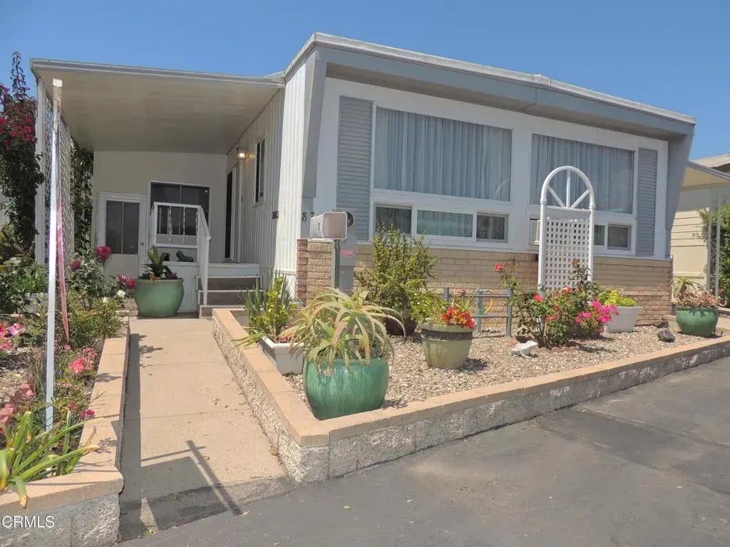 NO SPACE RENT! Only HOA $250/Mo.Enjoy the good life in this beautiful and well-maintained home! Featuring 2 bedrooms, 1 bath, and a versatile hobby room, this gem boasts quartz countertops in both the kitchen and bathroom. Enjoy abundant natural light through numerous double-pane windows. Step out to a low-maintenance garden with avocado, tangerine, macadamia, and cherry trees! Plus, the convenience of two sheds. Located in a desirable 55+ community with NO space rent and a low HOA of just $250/month. Enjoy the coastal city of Ventura, nestled between Santa Barbara and Los Angeles, known for its great weather, mountains, beautiful beaches, pier, surf, historic Buenaventura Mission, and easy access to the Channel Islands. This home is sure to be the one!
