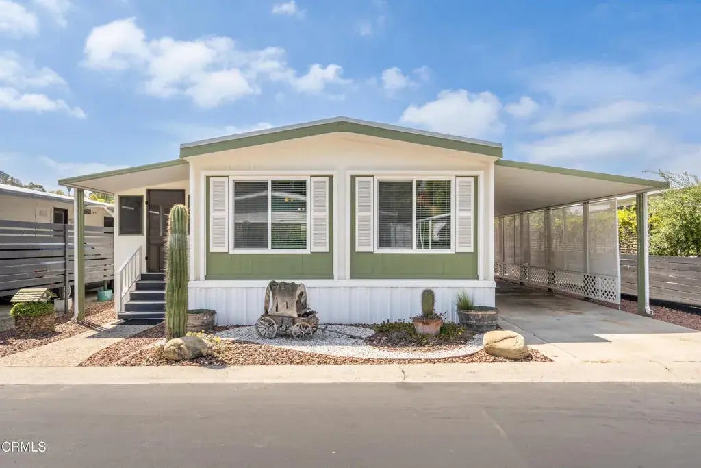 **All Age Park**This gorgeously updated 2-bedroom, 2-bathroom home offers comfortable living with thoughtful upgrades throughout.Enjoy solid wood flooring in the common areas, Cozy newly installed carpeting in the two bedrooms, an upgraded 192 sq. ft enclosed and screened patio room with Luxury vinyl plank flooring, and newer windows that bring in abundant natural light.The updated guest bathroom features a convenient Step-in shower-only , while the spacious primary suite includes a full bath, a stylishly updated vanity area and plenty of storage!Additional features include a built-in hutch, central air and heat, and new oven. All Kitchen appliances are included.The fully fenced backyard has been transformed with artificial grass and a custom pergola, perfect for outdoor fun and relaxation. While the oversized shed offers ample storage , the potting/work station is well situated.Located in an all-age park with great amenities including a pool, spa, and RV storage. Plus, you're close to the bike trail, minutes to beautiful Lake Casitas, and a quick drive to the beach!Don't miss this move-in ready gem schedule your showing today!