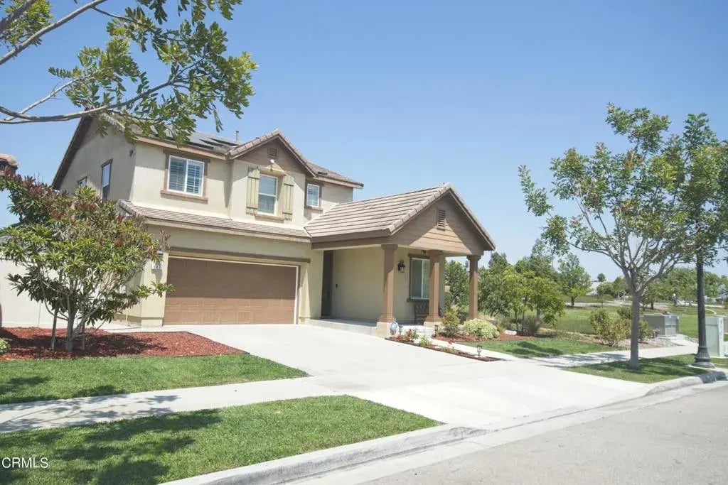 Welcome to the beautiful master-planned community of RiverPark! This stunning, newer home features a spacious kitchen with granite countertops, stainless steel appliances (including a refrigerator), plenty of cabinet space, a walk-in pantry, pendant lighting, and a breakfast bar island that opens to the family room and dining area. It's the perfect large open floor plan for entertaining family and friends. The family room includes built-in custom shelves for an entertainment system and a cooling ceiling fan. Downstairs, you'll find decorative tile flooring throughout, recessed lighting, plantation shutters, and a convenient guest room and bathroom. Upstairs, the master bedroom includes gorgeous, unobstructed views of the mountains and two water basins, an attached bathroom with dual vanity sinks, a walk-in shower with a soaking tub, and a large walk-in closet. The second floor also features two other bedrooms, a spacious loft with water basin views, a full hallway bathroom with dual vanity sinks, and a convenient laundry room with cabinets. The home includes a spacious low-maintenance backyard with stained concrete, turf grass, pergolas, and relaxing views of the local mountains. There is a two-car garage that comes with a level 2 EV charger, a full-size driveway, and ample street parking available. This home is in a prime location on a quiet street with only one immediate neighbor and has unobstructed views of local mountains, two water basins, and a greenbelt. Additional highlights include an assumable mortgage loan of $460,033 at 2.5%, paid solar panels, 2 water filtrati