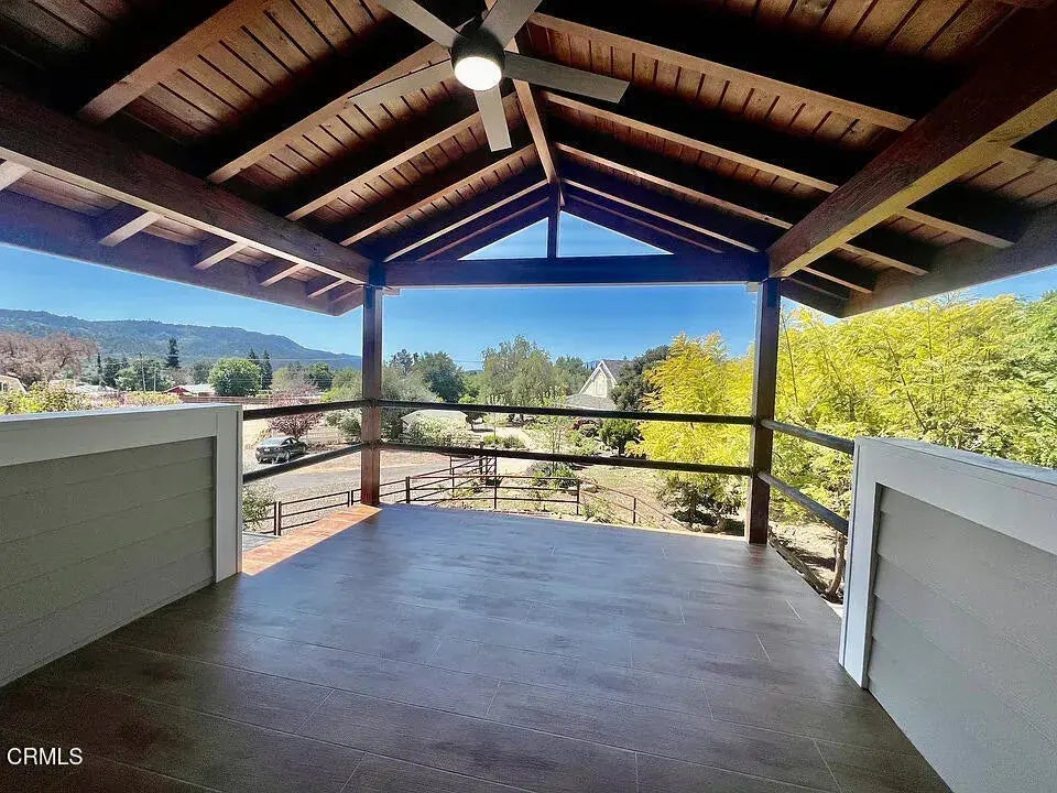 Nestled in the picturesque mountains of Upper Ojai, this beautifully updated 2-bedroom, 2-bathroom upstairs apartment offers a serene and sophisticated living experience. Just one mile from the charming neighborhood market and the renowned Summit Grill, this home perfectly balances peaceful mountain living with convenient access to local amenities.Upon entering, you'll be greeted by an expansive, light-filled space that includes a private balcony patio, ideal for enjoying the breathtaking surroundings. The elegant living area features a modern wood-burning stove, while the master en-suite bath evokes a spa-like atmosphere, complete with a freestanding soaking tub and dual shower heads.For added convenience, the kitchen is complemented by a laundry closet with in-unit washer/dryer hookups. Abundant closet and storage space ensures that comfort and practicality are seamlessly integrated throughout.