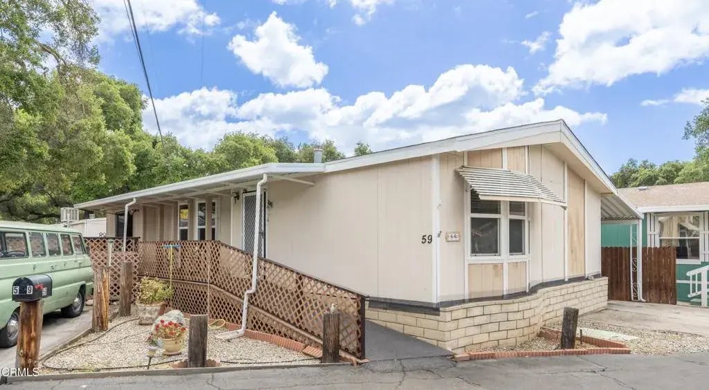 Welcome to 1273 S Rice Road #59 -- a beautifully maintained and thoughtfully designed residence nestled in one of Ojai's most desirable 55+ communities. This spacious 3-bedroom, 2-bathroom home offers an ideal blend of comfort, character, and convenience.As you step inside, you're greeted by a large and open living room that invites natural light and warmth, centered around a charming pot belly stove that creates a cozy focal point. The well-conceived split floor plan offers both privacy and functionality, with the primary suite situated away from the guest bedrooms. The primary bedroom features a generous walk-in closet and an en-suite bathroom with a walk-in shower.The guest bathroom includes a step- in shower, and one of the guest bedrooms offers direct access to the exterior deck through sliding glass doors--perfect for enjoying morning coffee or evening relaxation. A skylight enhances the bright, airy feel of the home, while the dedicated laundry room and additional linen storage add to the everyday practicality.Step outside to find a nicely sized yard, ideal for gardening, entertaining, or simply unwinding in the fresh air. The expansive deck offers a wonderful extension of your living space, and a storage shed provides additional utility.The roof was replaced in 2013, showcasing the seller's attention to quality and care.This home is a rare find--offering comfort and a lifestyle rooted in the charm of the Ojai Valley.