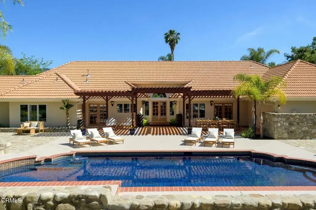 California Classic! Experience the quintessential Ojai living where every detail--from indoor elegance to outdoor splendor--speaks of refined craftsmanship and relaxed luxury. This single-story, open-plan home offers four bedrooms and four baths across approximately 3,700 square feet, .81-acres on a private cul-de-sac, seamlessly blending spacious living areas with resort-style amenities. Step inside to discover bright and spacious living areas, bathed in natural light, with delightful wood floors, vaulted ceilings, and large windows that frame breathtaking views of the surrounding mountains and majestic oak trees. The gourmet kitchen is a chef's delight, equipped with high-end appliances, custom cabinetry, and a generous island perfect for casual dining or hosting gatherings. Outside, the property transforms into an entertainer's dream. A sparkling pool invites you to cool off on warm California days, while the expansive patio areas are ideal for al fresco dining and sunset views. The meticulously landscaped grounds boast unmatched rose gardens, stunning rock work, and a family orchard, creating a picturesque setting for relaxation and enjoyment. This exquisite home offers the perfect blend of privacy and convenience, with easy access to Ojai's charming shops, restaurants, cultural attractions, phenomenal hiking trails, and a golf course nearby. The sellers are pleased to offer the residence fully furnished, providing a turnkey move-in experience, open to negotiation. Experience the epitome of California living in this bright, happy, and spacious residence that truly has i