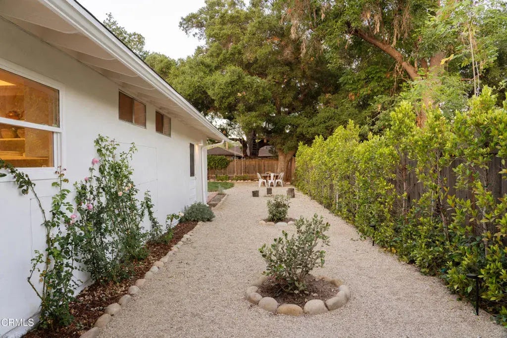 This downtown oasis, with designer kitchen and 440 sq ft finished garage, offers natural sophistication. A beautifully updated single-level 3BR/2BA sits on a beloved family street, nestled within lush landscaping. Inside you'll find wood floors, a brick fireplace, handcrafted tile, new designer lighting, appliances, and fixtures including a Bertazzoni range and artisan hardware. The primary suite features an elegantly renovated ensuite bath and garden access. French doors off the kitchen open to a patio flanked by climbing roses. The oversized garage has been newly converted into an inspiring flex space with glass doors, vaulted ceilings, epoxy floors, and custom built-in shelving. Ideal as guest quarters, a creative work space, or personal sanctuary. Additional updates include new electrical and plumbing, leased solar, and water softener & filtered drinking water for sustainable living. Outside, a 100+ year oak shades native grasses & fruiting trees; lemon, fig, guava, pomegranate, passionfruit, and raised garden beds, and invites al fresco dining with partial mountain views. Tranquil and private yet within walking distance from the farmers markets and restaurants.Welcome to a peaceful turnkey home with space to grow and thrive. The kind of Ojai home that rarely comes along.