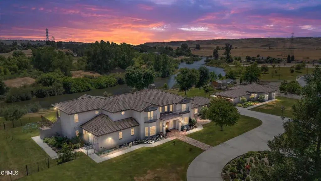 Welcome to this exceptional two-owner Spanish-style estate, perfectly situated on 3.08 peaceful acres along the breathtaking Kern River, located within an exclusive gated community for added privacy and security. This one-of-a-kind property offers two beautifully designed homes with a total of 5 bedrooms and 5 bathrooms, combining elegance, functionality, and serene natural surroundings.The main residence spans approximately 5,708 sq ft and features 4 bedrooms, 4 bathrooms, and two full kitchens--each equipped with high-end Viking stainless steel appliances. Step into a grand entryway with a stunning staircase, and enjoy formal living and dining rooms, a wet bar, and spacious living areas perfect for entertaining or relaxing in style.The guest house offers an additional 619 sq ft with 1 bedroom, 1 bathroom, and a fully equipped kitchen, ideal for extended family, or guests!Outdoor amenities include:A brand new custom pool and spaLush gardens and fully equipped animal coopsMature trees creating a peaceful, park-like settingNew windows, blinds, and garage doorsSecurity camera system for added peace of mindSolar panels to keep energy costs lowZoning for animals, with plenty of space for hobbies, gardening, or expansionWith over 6,327 sq ft of combined living space and a setting that blends privacy, luxury, and nature, this riverfront retreat is a rare gem offering resort-style living in a truly tranquil environment.