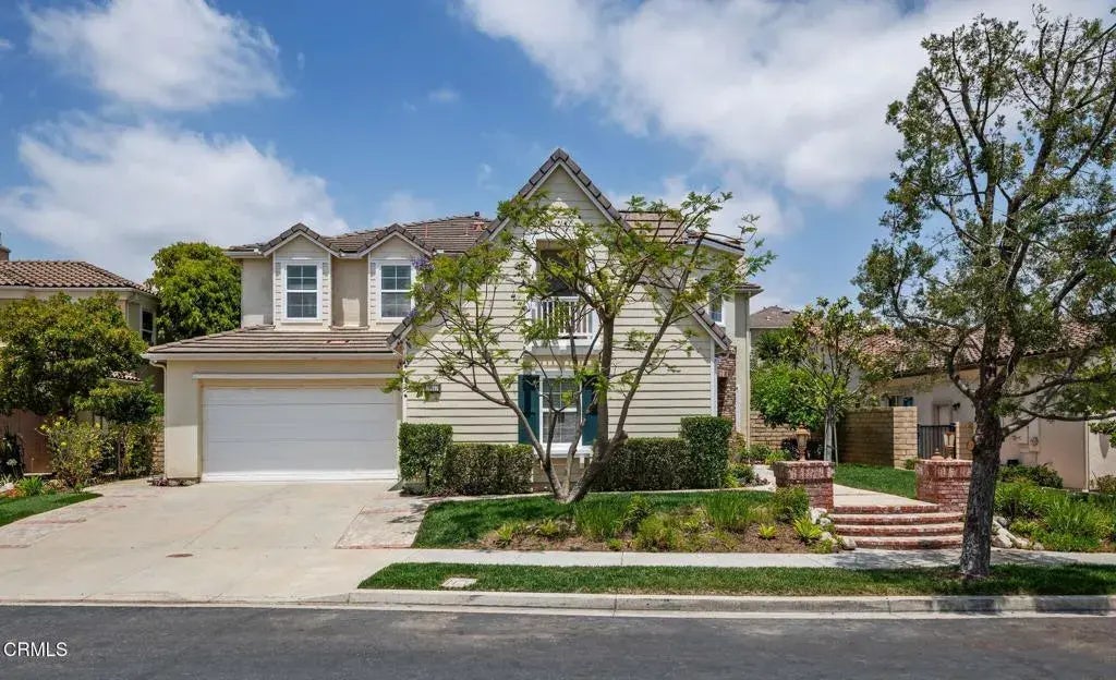 A lovely idyllic two storied house located in a private gated community. Surrounded by a quaint neighborhood in the hills of Moorpark, this home is perfect for anyone wanting peace and serenity. It has a beautiful front yard with sculpted greenery and a backyard filled with luscious fruit trees. Going up the brick layered stairs and into the front door to an open concept room with distressed engineered hard wood floors and to elegant crown molded walls with high ceilings and recessed lighting. The first floor includes a beautiful kitchen with granite counters with included appliances, a double doored corner office, a lovely fireplace in the formal living room, first floor bedroom and 3/4 bathroom, and the 3 car port garage. Additionally a laundry room with washer and dryer hookups. With a curved staircase leading to the 2nd floor to a large loft connecting 3 individual rooms and the master bedroom with its own walk in closet and master bathroom which contains its own jacuzzi bathtub. There are two air conditioners, one for the first floor and one for the second floor. The first floor AC unit is relatively newer, being only a few years old.