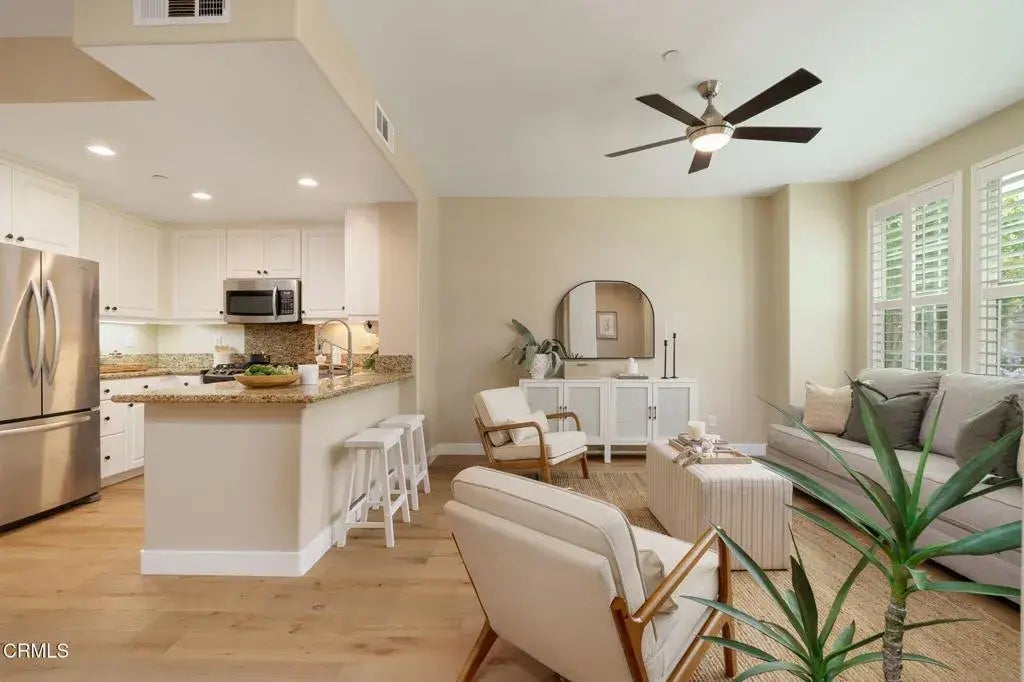 Welcome to 5360 Basie St, a 1,500-square-foot Lennar-built townhouse in Ventura, CA that lives like a single family residence. This 3-bedroom, 2.5-bath home features an attached two-car garage with EV charging and overhead storage racks and an HOA that is still under $400. Located just 0.1 miles from Thille Park and close to Sprouts, Barnes & Noble, and various shops, it offers easy access to daily conveniences. A nearby bike path connects Legacy Park to Kimball Park, and in the summer when the freeway is busier, you can take a back route to Ventura Harbor or Olivas Links Golf Course.The home has fresh paint in the garage and main living areas, with engineered oak wood floors downstairs. Recent updates include LED recessed lights, a new kitchen sink, hot water heater, dishwasher, water faucets, and some bathroom light fixtures. The primary bedroom is designed for privacy, with no shared walls and south-facing windows for plenty of natural light. Situated in the middle of the community, the townhouse is away from busy Telephone Road and not directly on the park, offering a quieter setting.This well-maintained townhouse combines comfort, modern updates, and a great location--perfect for your first or next home in Ventura.
