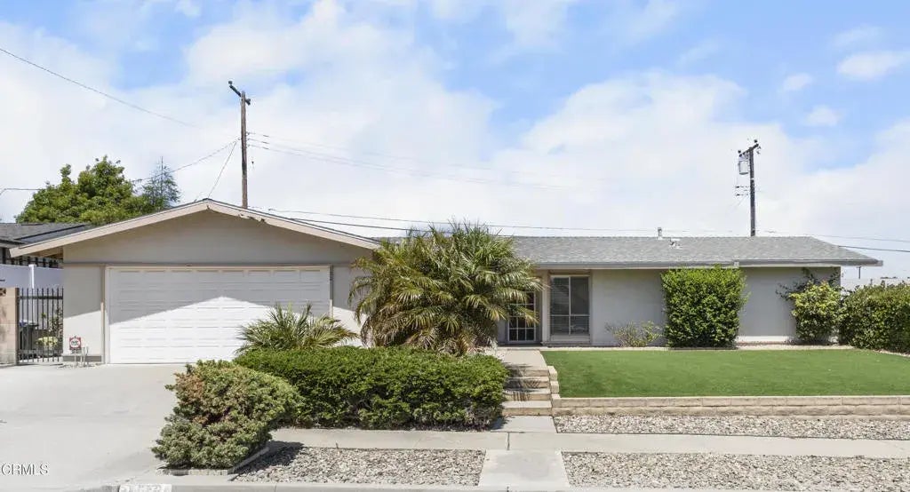 First time on the market in over 60 years!!! Located in a highly desirable neighborhood of East End Ventura, this single-story home offers 4 bedrooms, 2 bathrooms, and 1,719 square feet of living space on a 6,969 square foot lot.Inside, you'll find a warm and welcoming layout that includes a large family room with smooth ceilings, built-in shelving, a backdoor, and a sliding glass door leading to the backyard. The living room features a cozy brick fireplace and an impressive 8-foot slider, providing great natural light and easy access to the backyard.The kitchen is clean and functional, equipped with an electric stove and dishwasher, and situated just off the family room, ideal for everyday living and entertaining.The spacious primary bedroom offers peek-a-boo mountain views and an en-suite bathroom with a walk-in shower. The common bathroom features a classic tub-shower combo. Flooring throughout the home includes a mix of wood-like floors, tile, and carpet.Enjoy low-maintenance back and front yards with artificial grass in both. The backyard feels private, with no neighbors looking down on you, and includes fruit-bearing lemon, orange, and tangerine trees. A vinyl fence and block wall surround the property for added privacy.Additional highlights include; No stairs throughout the home, attached two car garage with washer/dryer hookups with ample cabinet storage, no HOA or Mello Roos, super clean and well maintained throughout. This lovingly cared-for home is ready for its next chapter. A rare opportunity you won't want to miss!