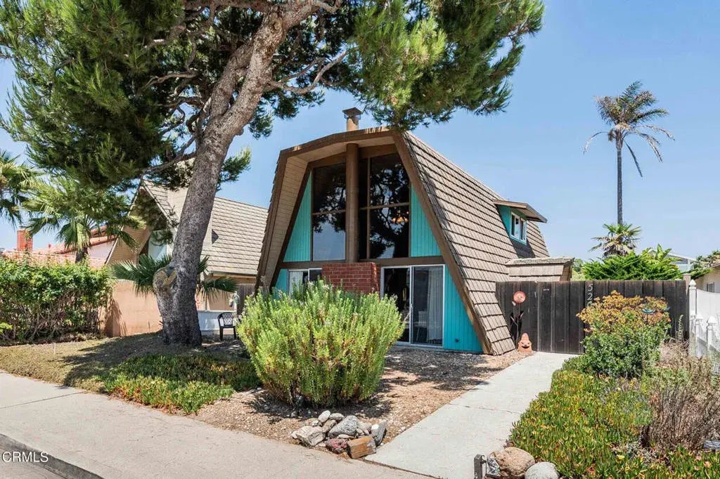 Midcentury Modern Coastal Gem - Steps to the Sand! You'll love this Architecturally significant A-Frame that is located on one of the rare all residential streets in Mandalay Shores. The beach and ocean are just steps away with a coastal access easement at the end of Beachcomber Street. Lovingly known as the McGrath Beach House and Tree House, it will delight you the moment you step inside the living room with it's soaring open beam ceilings and walls of glass. The wonderful floor plan has 3 bedrooms, 2 baths & a loft overlooking the main living area. Enjoy true indoor/outdoor living with the large front yard & sundeck. The covered open lanai is perfect for relaxing summer nights and barbecuing. This south facing residence features light grey-washed open-beam ceilings, wood plank flooring in the main living room, a cozy brick wood burning fireplace & an oversized 2-car garage. Additional parking for guests is available on Beachcomber Street. Come experience the charm, design, and lifestyle of the McGrath Beach House--your modern coastal haven awaits.