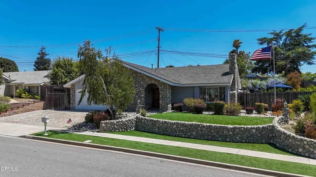 Lovely and spacious must see single story, 4 bedroom, 2 bathroom home with pool & spa located in the beautiful city of Thousand Oaks. This home has great curb appeal with a stone paver driveway, mature low maintenance landscaping, vinyl siding, river rock stone facade and walkway accents. Entry leads in to the open floor plan of the kitchen, living and dining areas featuring a high ceiling with large wood beam, recessed lighting, bay windows, gorgeous wood flooring, and a fireplace with wood mantle, flagstone hearth and river rock stone surround. The kitchen shines featuring Quartz counters with mosaic tile backsplash, stainless steel appliances, center island with bar overhang, pendant lights, and the dining area with wet bar and beverage cooler. Down the hall is garage access, coat and linen closets, secondary bathroom and all bedrooms. The sizable main bedroom includes a large closet, backyard access, and an en-suite main bathroom with dual sinks, tile flooring and a large jetted tub with granite surround.Enjoy the outdoors in the huge backyard, ready for entertaining featuring a large pool & spa with waterfalls and river rock accents, solar powered heater, mature landscaping, stamped concrete, and a built-in outdoor kitchen area with bar seating and a BULL Angus 30 inch stainless steel outdoor grill.